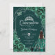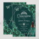 Invitación Quinceanera Floral Emerald Green Silver Dress