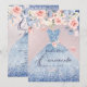 Invitación Quinceañera Floral Polvo Azul Brillo Vestido