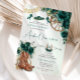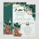 Esta moda rústica, invitada de Quinceañera, presenta una acuarela floral de color verde esmeralda, botas de vaquero adornadas con flores, una herradura y elementos de temática occidental. Personalízalo con sus detalles de forma fácil y rápida, simplemente pulse el botón Editar usando herramientas de diseño para reorganizar y formatear el estilo y la ubicación del texto. c) El estudio Happy Cat Studio