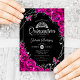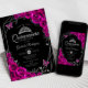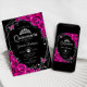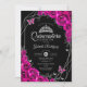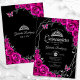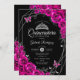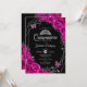 Invitación Quinceanera Fuchsia Floral de plata negra rosa