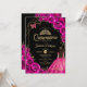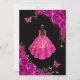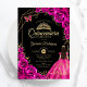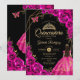 Invitación Quinceanera Fuchsia Pink Gold Dress Floral
