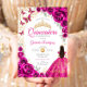 Invitación Quinceanera Fuchsia Pink Gold Floral