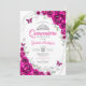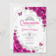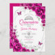 Invitación Quinceanera Fuchsia Plata Rosa Floral