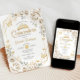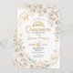 Invitación a la celebración de Quinceanera blanca, dorada y crema de marfil. Características, letra de guión, mariposas doradas, rosas de acuarela y tiara. Perfecto para una elegante celebración de glam al estilo de la princesa. Personaliza con tus propios detalles. Invitaciones Zazzle impresas o una plantilla imprimible digital de descarga instantánea.
