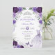 ¡La invitación perfecta para la quinceañera de tu hija está por fin aquí! Esta moda y encantadora invitación a la quinceañera cuenta con elegantes rosas color agua morado, un brillante vestido de princesa lavanda, una tiara purpurina de oro y dos mariposas revoloteadoras. Haga clic en el botón "personalizar adicional" si desea reorganizar y formatear el estilo y la ubicación del texto.