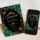 Invitación Quinceanera negra de oro verde esmeralda