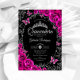 Invitación Quinceanera negra de plata rosa de Fuchsia