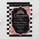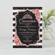 Invitación a la celebración de Quinceanera blanca y dorada Rosa. Incluye rayas, letra de guión, rosas rosas rosas rosas, tiara y confetti. Diseño elegante con rosa de oro falso purpurina. Perfecto para una elegante celebración de glam.