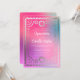 Esta moderna invitación a la quinceañera cuenta con un divertido fondo rosa, violeta y azul gradiente, un marco de inspiración papel picado en un falso Relieve metalizado plateado con una elegante tipografía en blanco. ¡Este diseño es festivo, femenino y moderno!