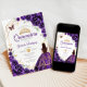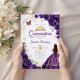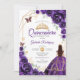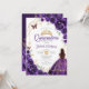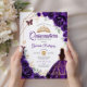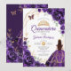 Invitación Quinceanera Purple Floral Vestido Dorado