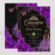 Invitación Quinceanera Purple Gold Butterfly Dress Floral