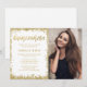 Invitaciones fotográficas del purpurina Quinceanera, moderno blanco y dorado. Estas 15 invitaciones dulces de moda son fáciles de personalizar para su fiesta. Los diseños son ilustraciones/gráficos impresos planos - NO PURPURINA ORO REAL.
