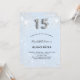 Una invitación moderna, elegante y glamurosa para un chica de Quinceañera, 15 años de fiesta. Un fondo azul oscuro, decorado con un polvo falso purpurina plateado. Personalice y agregue su nombre y detalles del fiesta. El número 15 se escribe con un tipo de letra, guión.