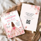 Invitación Quinceañera QR Code Rubor Rosa Floral rosa