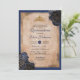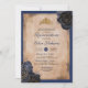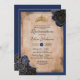 Invitación Quinceañera Real Rosas Doradas Azul Marino Antiguo