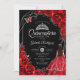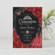 Invitación Quinceanera Red Silver Butterfly Dress Floral