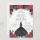 Invitación Quinceañera Rojo Negro Roses Floral Princesa Vesti