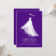 Estas invitaciones de Quinceañera son diseñadas para reflejar maravillosamente el viaje emocional y el atractivo mágico de la celebración de los 15 años de una joven. El diseño combina elegancia con un enfoque minimalista, destacando la silueta de chica de cumpleaños con un impresionante vestido blanco y la tiara tradicional de Quinceañera, que capta perfectamente la esencia de "Mis Quince Años". La imagen irradia una sensación de romance etéreo y evoca una sensación de nostalgia atemporal, acentuada por los golpes audaces, parecidos a brochas, contra un fondo violeta profundo. La elegancia sencilla del diseño, junto con su profundidad significativa, simboliza de manera excelente la gracia de la joven y el significado de este cumpleaños de hitos —una celebración festiva y un paso importante hacia la edad adulta. Además, existe la opción reflexiva de personalizar el reverso de la tarjeta con una foto muy apreciada, añadiendo un toque único y personal a estas invitaciones memorables.