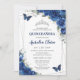 Invitación Quinceañera Royal Blue Floral Butterflies Cumpleañ