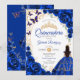 Invitación Quinceanera Royal Blue Gold Floral