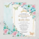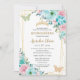 Invitación Quinceañera Turquoise Pink Floral Gold Butterflies