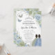 Invitación Quinceañera Verde Sage Azul Flores Gemelas Plata