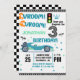 Rev up the excitement with this editable Race Car Birthday Invitation! Featuring the fun phrase “Vroom… Vrooom Start Your Engines For”, bold tire tracks, and a cool racing car in black, blue, and green, this invitation is perfect for boys ages 2 to 10. Easily customize the child’s name, age, date, time, and party details. Ideal for racing lovers and high-speed birthday themes!