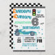 Rev up the excitement with this editable Race Car Birthday Invitation! Featuring the fun phrase “Vroom… Vrooom Start Your Engines For”, bold tire tracks, and a cool racing car in black, blue, and green, this invitation is perfect for boys ages 2 to 10. Easily customize the child’s name, age, date, time, and party details. Ideal for racing lovers and high-speed birthday themes!