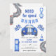 Invitación Race Car Need for Speed 4º cumpleaños Fiesta