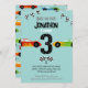 Race On Over 3rd Birthday Racecar Party invitaciones. Carros divertidos para una fiesta de tercer cumpleaños de un niño.