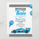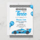 Invitación Racecar Blanco y Azul Cute Kids Cumpleaños