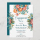 Una disposición floral vívida y detallada que exhibe peonías en tonos turquesa, naranja y verde azulado. Los pétalos ricos de capas y los centros luminosos se complementan con hojas verdes y flores naranjas más pequeñas. El ramo está compuesto artísticamente por flores que irradian hacia el exterior, evocando elegancia y armonía.
