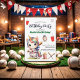 Un bonito diseño con un bonito unicornio arcoiris jugando al béisbol y una elegante caligrafía. Puede personalizar esta invitación con sus propios detalles.