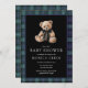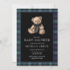 Invitación Ralph Teddy Bear Navy Green Plaid Baby Shower