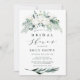 Esta invitación a la ducha de novias incluye vegetación de invierno pintada a mano, flores de algodón con texturas doradas y acuarelas, y un patrón de rama verde en la parte trasera. Para una personalización más avanzada de este diseño, haga clic en el enlace "personalizar más adelante". También están disponibles los elementos coincidentes.