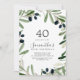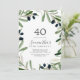 Esta moderna invitación de 40 años de la rama de olivo es perfecta para una fiesta de cumpleaños boho. El diseño rústico y elegante presenta una sencilla acuarela de hojas botánicas verdes y aceitunas negras en una pequeña rama de ambiente mediterráneo clásico.