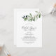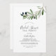 Esta moderna invitación a tomar el té de la ducha de novias en la rama de olivo es perfecta para un evento de boho. El diseño rústico y elegante presenta una sencilla acuarela de hojas botánicas verdes y aceitunas negras en una pequeña rama de ambiente mediterráneo clásico.