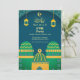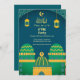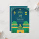 Esta moderna y elegante invitación del partido Iftar de Ramadán incluye árabe dorado "Labbaik ya Rasool" "caligrafía y patrón islámico dorado, mezquitas coloridas adorables dibujadas a mano, linternas islámicas y media luna de oro con estrella en un oscuro fondo verde verde azulado. Puede cambiar fácilmente el color de fondo, el texto, las fuentes, los colores o eliminar haciendo clic en las herramientas de personalización de Zazzle.