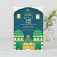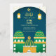 Esta moderna y elegante invitación del partido Iftar de Ramadán presenta árabe dorado "Labbaik ya Rasool" "caligrafía y patrón islámico dorado, mezquitas coloridas adorables, linternas islámicas y media luna de oro con estrella en verde azulado color verde y blanco. Puede cambiar fácilmente el color de fondo, el texto, las fuentes, los colores o eliminar haciendo clic en las herramientas de personalización de Zazzle.
