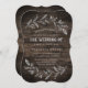 Las ramas curvas de madera del boda de la tarjeta de invitación son perfectas para un boda moderno. El diseño de la moda rústica presenta la silueta de dos ramas florales dispuestas para componer una corona rústica y frondosa sobre un fondo de madera. Para obtener más opciones de redacción de la invitación a la boda, consulte la colección completa de Bodas de ramas curvadas: https://www.zazzle.com/collections/119406265505219166