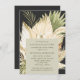 Invitación a la fiesta después de la cena de bodas en el desierto boho con palmeras pintadas a mano con acuarela, hierba de pampas, orquídeas blancas y hojas secas en tonos terrosos naturales sobre fondo gris oscuro. Personalice fácilmente los colores de fondo y primer plano, el estilo de fuente, el diseño y agregue su foto de boda favorita en el reverso. Invitaciones y accesorios coordinados disponibles en la tienda.