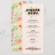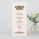 Ilustración de ramo de flores delicadas en acuarela pastel moderna y patrón. Diseño de tipografía moderna elegante, texto de menú de cena.
