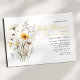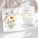 Invite a sus invitados a celebrar una ocasión especial con nuestra Invitación de Baby Shower Boho con Ramo de Flores Silvestres Amarillas. Esta invitación muestra un delicado arreglo de flores silvestres amarillas y blancas, ofreciendo una estética suave y acogedora. Incluye detalles esenciales del evento como la fecha, hora y ubicación, todos enmarcados con toques florales. Perfecta para establecer un tono alegre, esta invitación es ideal para un baby shower con tema bohemio, prometiendo una reunión elegante y memorable.
