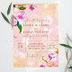 Hermoso diseño de invitación de boda floral elegante con ramo de orquídeas sobre un fondo rosa melocotón. El texto es totalmente personalizable.