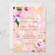 Hermoso diseño de invitación de boda floral elegante con ramo de orquídeas sobre fondo rosa melocotón. El texto es totalmente personalizable.