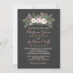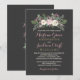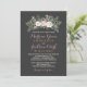Esta impresionante invitación de boda cuenta con un exuberante ramo floral de peonías rosa, rosas crema y follaje salvia sobre caligrafía rosa suave y tipografía serif crema en un rico fondo de carbón. El dramático fondo oscuro crea un hermoso contraste con las delicadas flores y el texto romántico. Todo el texto es totalmente editable para personalizar nombres, fechas, lugar y detalles de la celebración.