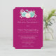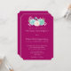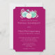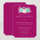 Una invitación de boda con fondo magenta. Un ramo de acuarela de colores pastel en la parte superior. Las flores, hojas y ramitas son rosa pastel y verde.