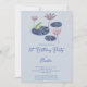 Rana acuarela sobre un diseño divertido de la hoja de lirio en el agua, perfecto para una invitación de fiesta de primer cumpleaños de un amante de los animales. Puede realizar fácilmente el personalizar de la invitación a su gusto cambiando cualquiera de los textos, incluida la edad. Neutralidad de género para un niño o chica. Arte original de Nic Squirrell.