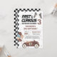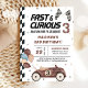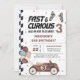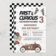Rápido Y Curioso coche de carreras marrón tercera invitación de fiesta de cumpleaños