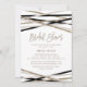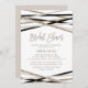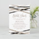 Esta tarjeta de invitación a la ducha de novias, con tiras de marfil y negro, es perfecta para una ducha de novia moderna. El diseño es elegante y neutro, con líneas cruzadas en tonos crema, negro y purpurina de champán dorado, para un aspecto geométrico. Atención: este diseño no incluye un verdadero purpurina de oro de champán. Se trata de un gráfico de alta calidad hecho para parecerse al shimmer de oro del champán.